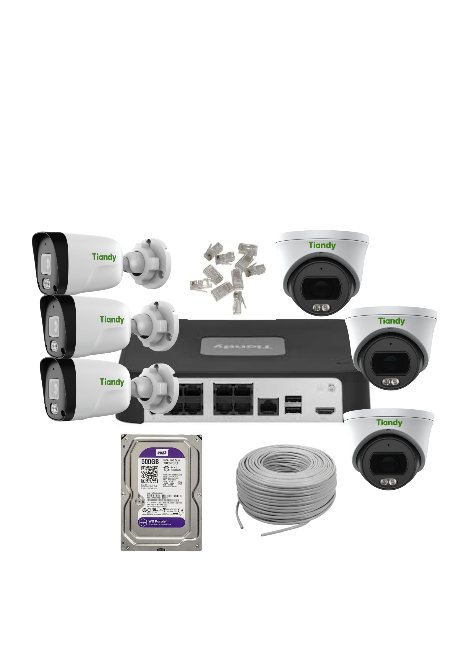 The Tiandy 6 Audio camera package with 8 channel NVR (20M) in this package deliver high-definition 1080p or 4MP/5MP resolution, ensuring clear and sharp images. With advanced H.265+ video compression, users can save storage space without compromising video quality.